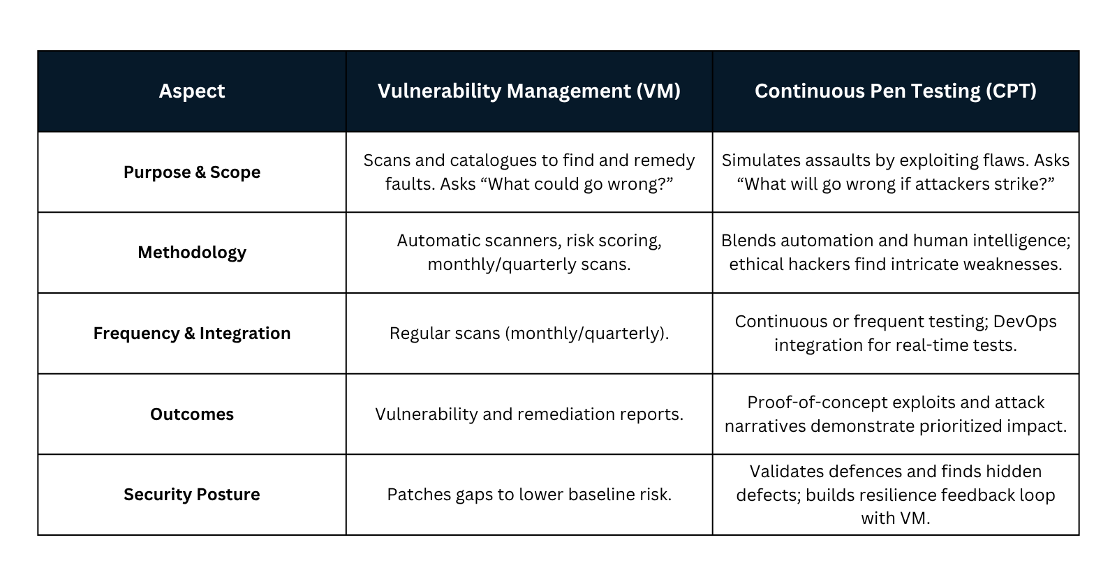 Major Differences - Vulnerability Management vs Continuous Pen Testing